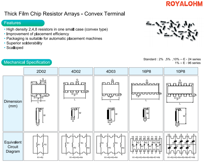 產品簡介:高密度電阻2,4,8在一個小的情況下(凸型)