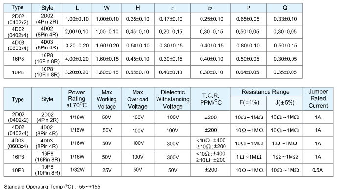 國巨排阻規格書下載: