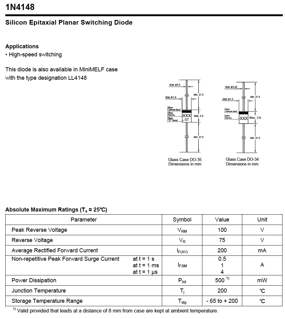 產品簡介:廠家直銷玻璃開關二極管 1N4148,1N4448 DO-35